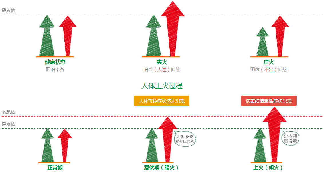 “火”是形容身體內(nèi)某些熱性的癥狀。上火也就是人體陰陽(yáng)失衡后出現(xiàn)的內(nèi)熱證候,如眼睛紅腫、咽喉腫痛、牙齦腫痛、口角糜爛、便秘、尿黃等。